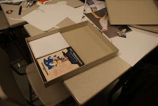 I constructed the box out of greyboard and PVA glue rather than mountboard and paper because this box is quite sturdy and wrong and will be easy to wrap in whatever paper we choose to be on the outside. It was built around the dimensions of the original Megadrive box (Will's) to ensure that everything would fit nicely.